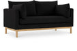 Let the cares of the day drift away when you're relaxed from the comfortable confines of this Lanham linen textured fabric loveseat. The boxy design is modern and chic with a mid-century vibe, and the loveseat rests on a solid wood frame for impeccable durability. Linen textured fabric upholstery covers the sides, back, and cushions of the chair, while two plump pillows on either side make it an extra comfy seating option that everyone loves.