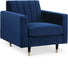 Cozy up to the comfort of this Lola Chair. Its rich color adds a jolt of excitement and fun to your space, shaking things up in a neutral-colored room. The back is channel tufted for a beautiful, contemporary look and to help the back cushioning maintain its welcoming loft. Elegant slant-tipped legs with tips lend this chair a charmingly modern finish and provide a sturdy foundation. Add it on its own, or add the matching sofa and loveseat for a coordinated look.