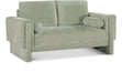Refresh your living space with this Madeline chenille fabric living room loveseat. It's upholstered in rich chenille fabric with plush padding and bolster pillows that complete the look while supporting your body while you relax and unwind. The loveseat's modish design ensures it seamlessly complements any decor and fits well with other items in the Madeline collection. Whether you're entertaining guests or unwinding with a book, this chair provides both coziness and sophistication.