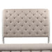 Accent your bedroom with the perfect blend of European Traditional design and casual appeal using the Magnolia Manor Sleigh Upholstered headboard. Finished in a weathered brown and antique white finish with heavy chipping combination this piece is crafted of poplar solids and white oak and birch veneers.The upholstered headboard is button tufted in a chenille fabric laced with tones of white, tan and brown threads and features a rolled top along with a shaped panel for definition and character.