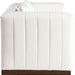 A minimalist masterpiece, the Mallina vegan leather loveseat combines form and function for a modern and stylish look. Its classic design and rich leather upholstery make it a sophisticated statement piece that will never go out of style. The clean lines, paired with a brown walnut finished base, create a sophisticated and inviting atmosphere.