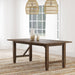 Set the tone in your stylish home with the welcoming ambiance of a modern farmhouse dining table. The rectangular table features a clean, streamlined silhouette complete with a recessed apron and decorative diagonal braces that bring architectural appeal. The table offers a natural wood finish to highlights its beautiful mahogany and rubberwood construction and veneers. The tabletop expands with the addition of the leaf, which measures 18-inches across to add seating for two more of your favorite people. Tapering feet are a subtle finishing touch, defined with linear trim that adds the perfect dose of dimensionality.