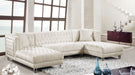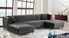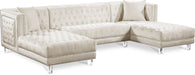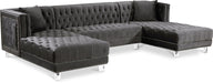 Grab a friend and get comfortable on this beautiful Moda velvet sectional sofa. This astounding sectional epitomizes luxurious living and features lots of room for the whole gang to get comfortable. Double chaise lounges on each end gives you space for stretching out for a quick cat nap, while deep tufting adds to the luxurious appeal of this unit. Acrylic lucite legs and a sturdy frame make this sectional a durable addition to your living room or den, while the included pillows give a homey slant to an otherwise uber contemporary sectional.