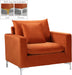 Curl up with a good book from the welcoming confines of this Naomi Chair. The color of this chair adds a bold touch to your decor and shakes up otherwise neutral color schemes. Plush velvet material feels cozy and comfortable against your skin, while deep seat cushions provide lots of room for you to stretch your legs. This chair comes with both and legs, so you can customize its look to meet your decor plans. Pillows are included for added homey warmth and comfort.