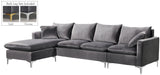 Bring glamour to your living room or den with this Naomi Sectional. This striking set blends the modern with the traditional for a look that wows from every angle. Luscious velvet provides a neutral element to your room, ensuring its easy fit with existing furnishings. Choose from either set of legs, both and, to customize the sectional to your specific tastes. Pillows come with this sectional, adding to its welcoming feel.