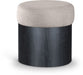 Strikingly modern, the Nimes velour fur fabric upholstered ottoman combines plush comfort with sleek design. The top is wrapped in luxurious velour fur fabric, offering a soft and inviting texture, while the cylindrical rich black wooden base provides a minimalist contrast. This versatile ottoman is perfect as extra seating, a footrest, or a stylish accent in any living space.