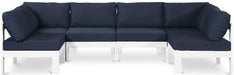 Nizuc - Outdoor Patio 6 Piece Modular Sectional With White Frame - Navy