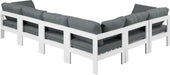 Nizuc - Outdoor Patio 6 Piece Modular U-Shaped Sectional With White Frame - Gray
