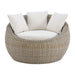 The Ollie Cuddler Chair and End Table patio furniture just made your backyard experience a little more inviting. Crafted with a powder coated frame, these outdoor pieces promise countless years of style with their unique half round weave design. You'll find an upholstered cushion and pillows on the chair for you to sit back and relax, while your favorite drink sits at arms reach on the accompanying end table. Take in some fresh outdoor air with the Ollie Cuddler Chair and End Table combo.
