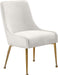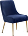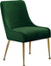 Revamp your dining space with this Owen Dining Chair. Posh velvet upholstery covers every inch of this chair, giving it a svelte look that's just the thing for modern decor. The polished legs have a ball design for added visual oomph, and a matching handle on the back adds an elegant detail while also providing an easy way to slide the chairs in and out from your choice of table.