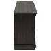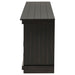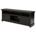Introduce expansive storage underneath your flat panel television with this modern farmhouse TV stand. It's a wooden design with roughhewn details that offer charming texture and casual allure in your living room or den. Two cabinets offer decorative doors while providing plenty of interior storage that helps to create a tidy look in your living room. Two open shelves create space for media and gaming components mixed with decor that offers a personalized touch. Cord management openings complete the design, making for a streamlined design that accommodates televisions up to 75 inches placed on top or mounted above.