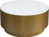 Make a bold statement in your living space with this Presley table from Meridian Furniture. Its solid, contemporary design features a genuine marble top with a brushed gold metal base that complements each other nicely. Its round surface is perfect for holding books, knick-knacks, and other odds-and-ends items that you have laying around your living room, den, family room, bedroom, or any other space in your home that you decide to place it.