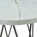 The Riko 5PC Counter Height Dining Set is a beautiful set for your dining room. The rounded shape of the white, marble table top transitions into sleek, clean lines and a square pedestal base. The veining in the marble table top will slightly differ with each cut but makes this piece so unique. Why stop there, when the counter height side chairs provide a completed look to this set. The chairs, are designed with faux leather bucket seating and purposeful distressing in the fabric. The rugged look of the chairs and the cleanliness of the marble table top give this set a transitional design your dining room needs.