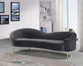 Get comfy while remaining chic in this elegant Ritz velvet sofa. Plush-colored upholstery provides a soft texture that is pleasing to the senses, while its curved design offers a contemporary touch to your home furnishing. metal legs complement the sofa's sophisticated color, creating a gallant piece anyone would be proud to display in their home.