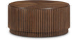 Grab family and friends and your favorite board games for a night of fun around this Ronin Coffee Table. Elegant and eye-catching, this beautiful table boasts a rich finish and a fluted design for added visual appeal in the living room or den. It's made from solid wood, MDF, and oak veneer, so it's sturdy and stout enough to last through endless Scrabble matches without missing a beat. The natural wood grain variation gives this coffee table a unique look, while its mid-century design allows it to blend seamlessly into any space you choose to use it.