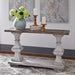 Enhance your space with the Spanish style Sedona sofa table. Crafted of rubberwood solids, this piece features a Kona brown finish, an appealing planked top with peg accents, a planked bottom shelf for additional storage, anchored by Spanish style square turned legs. This gorgeous sofa table will be a great addition to any traditional style space.