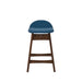 Sit in comfort with the Space Savers counter chair. Crafted of rubberwood solids, this piece features a satin walnut finish on the legs, linen upholstery, a low back which offers a unique design, nylon chair glides to protect your flooring, and is anchored by beautifully splayed legs. This piece is available in multiple colors, sure to find a place in any home.