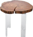 Woodsy charm collides with modern lines in the design of this Woodland end table. This table is anything but demure and is bound to attract attention from all angles, whetheryou'rere using it as a spot to display a lamp or framed print or to hold a glass of wine while you relax and unwind. Crafted from rich, live-edge acacia wood, this table rests on acrylic legs for a modish finish.