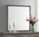 Enhance a stylish bedroom with the addition of a transitional dresser mirror. The framed design adds lightness and reflectivity, perfect for grooming rituals or selecting jewelry for the day ahead. It features a simple, clean-lined frame with a brown oak wood grain finish. The mirror's glass is flat, adding to the contemporary look and feel. Its engineered wood and laminate construction is durable and resistant to scratches and dents.